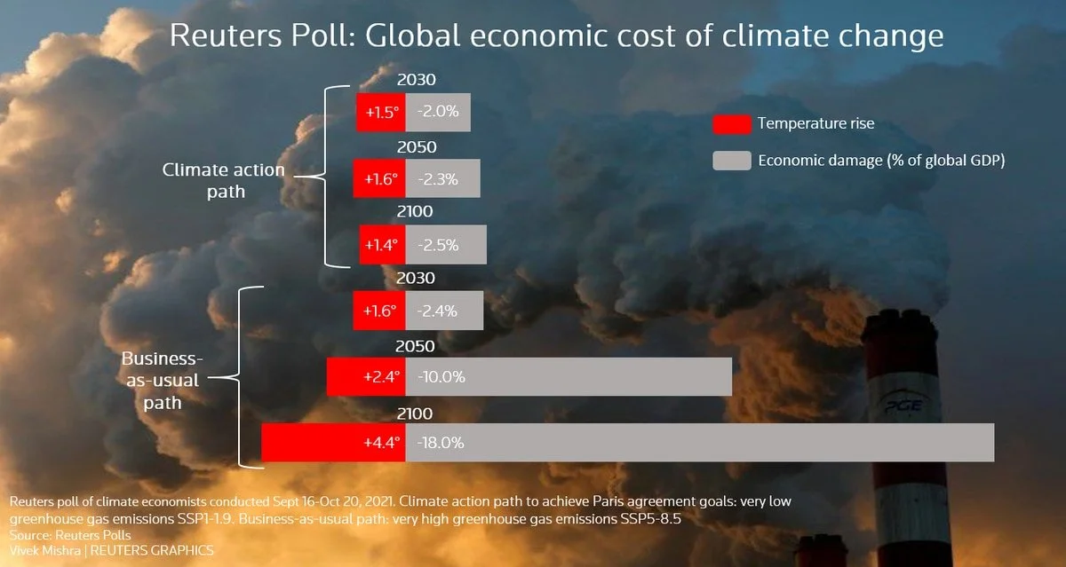 Economists report that the cost of climate inaction will be more than the cost of climate action.